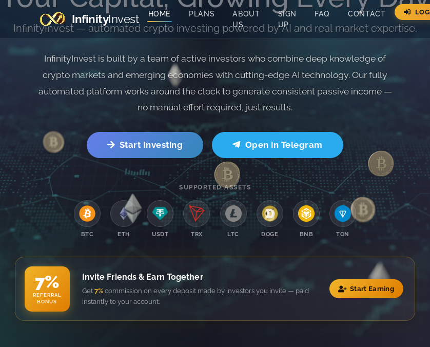 InfinityInvest — automated crypto investing powered by AI and real market expertise.