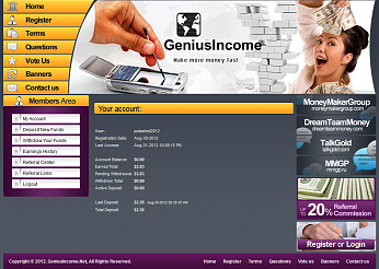Thumbs down http://geniusincome.net ...... SCAM! SCAM!