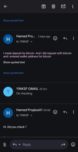 I sent them my bitcoin wallet address.but you can see the proof image that the sent me by perfect money. When i sent them gmail,they just sent me checking. Now after 1week ,they dont sanswer me