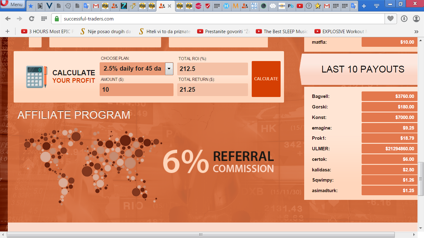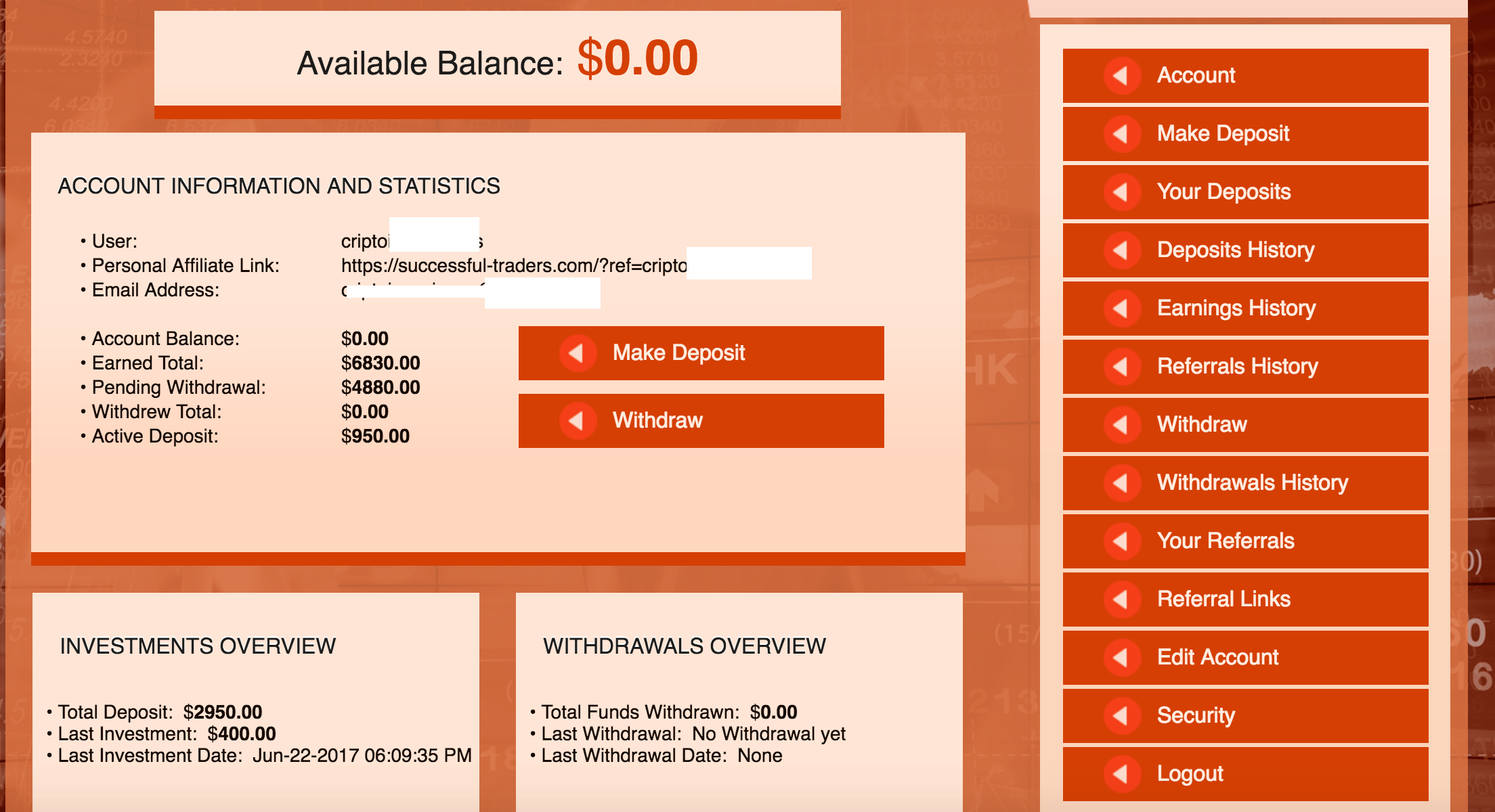 | Successful-Traders Successful-Traders Team Limited offers a new ultra safe investment destination that is interesting for everyone! We are making every our efforts that your money not only would be fully intact, but also have actively worked on the lucrative multicurrency Forex market! To get started such profitable project, we have had a very long path. There was a path of knowledge and experience, the path of fatal errors and bright successes, the path with bitterness of defeat and sweet taste of victory. |