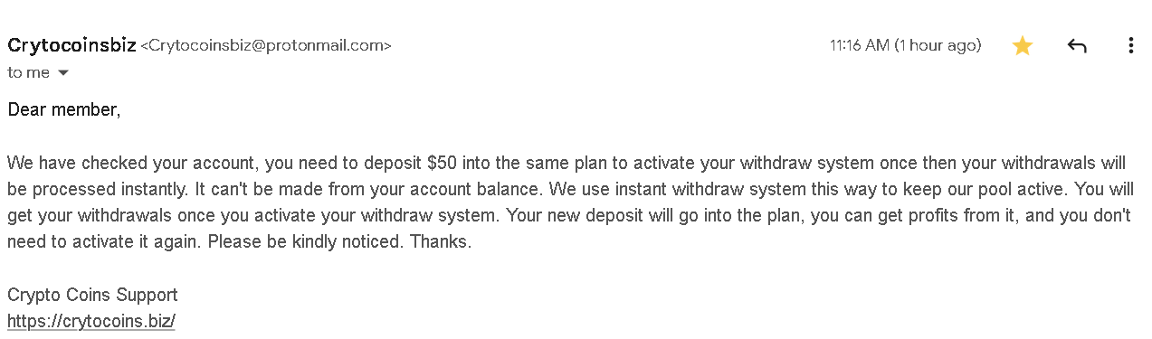 Beware Of crytocoins.biz Please The Email He Sent Me