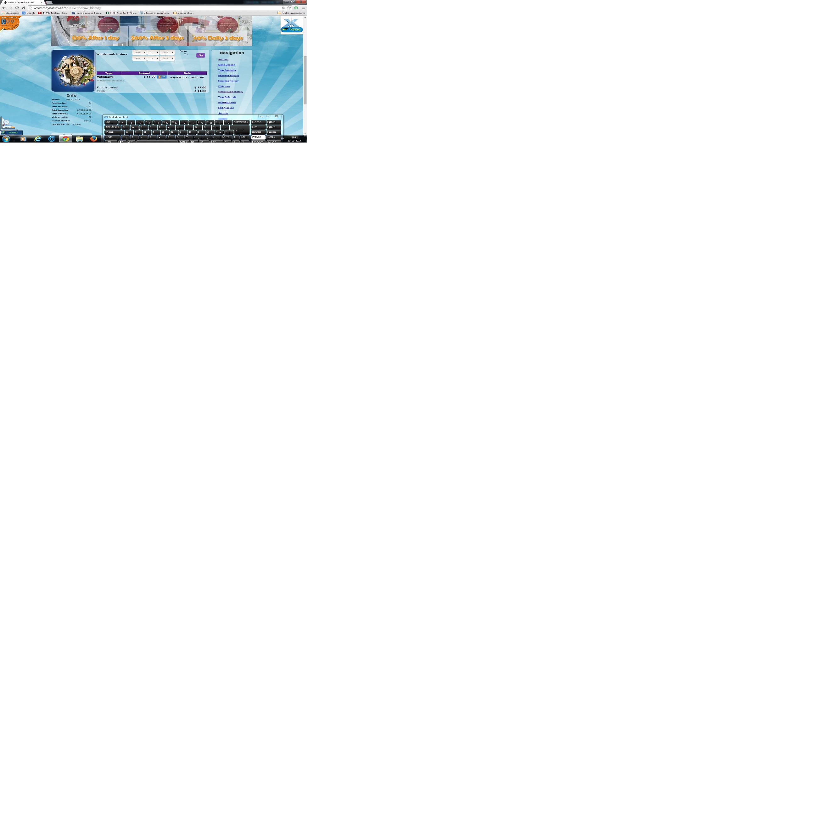 ordered 50% of my profits already been a week and nothing the past few days I asked outropagamento and now I can get into my account: Mad: