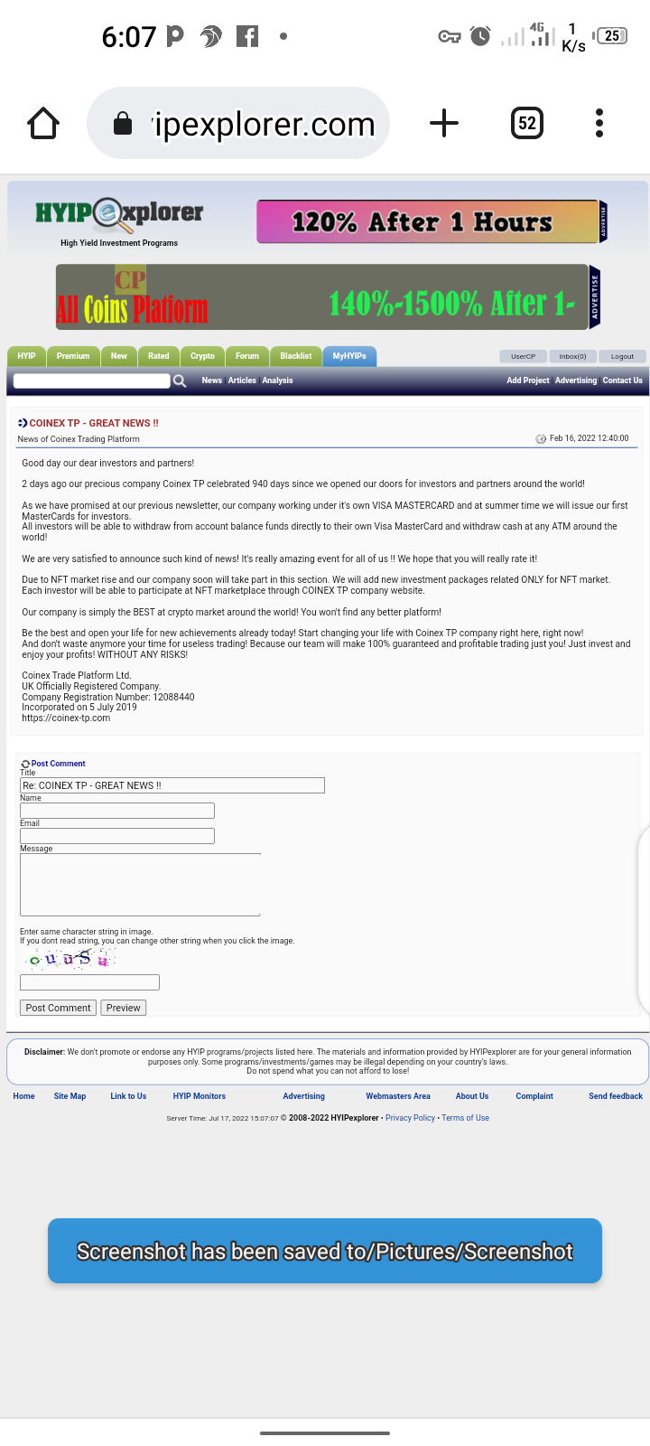 Maybe who knows, on telegram they said, "Dear Partners and investors of the company Coinex-tp.com,
