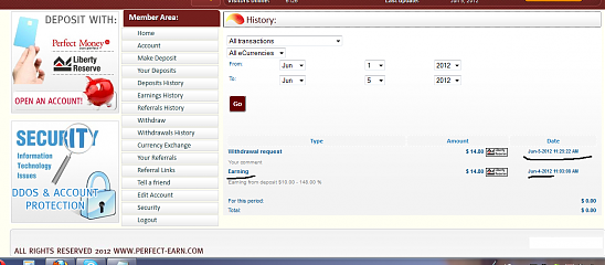 Memo: Withdraw from Perfect-Earn.com