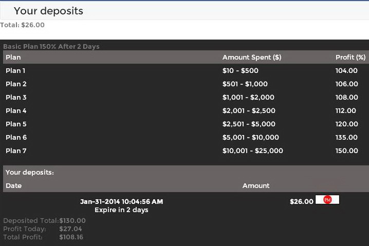 31.01.14 18:12 Transfer Sent Payment: 200.00 USD to account U4901568 from U1294989. Batch: 47393913. Memo: Shopping Cart Payment. Deposit to IX9.BIZ LIMITED User all-hyips.info.