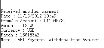 Memo : API Payment. Withdraw from Avo.net.
