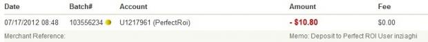 Memo : API Payment. Withdraw to swatello from Perfect ROI.