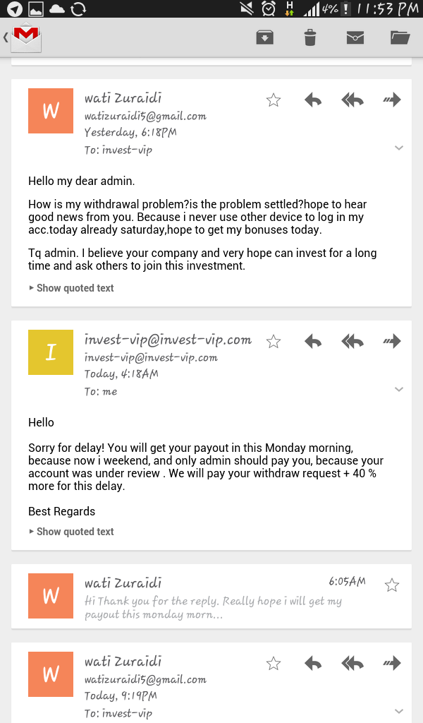 I hope invest vip will pay me immediately to keep your reputation always excellent.