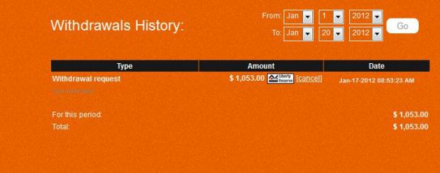 Withdrawal request $ 17.60 [cancel] Dec-16-2011 11:59:09 PM
