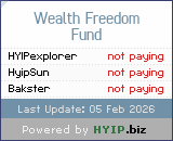 | Wealth Freedom Fund Wealth Freedom Fund is financial mangement firm that specializes in the foreclosure and short sale markets.Take advantage of this unique and 100% risk-free opportunity to watch your wealth skyrocket. Wealth Freedom Fund, LLC. is a legally registered company in the state of California. |