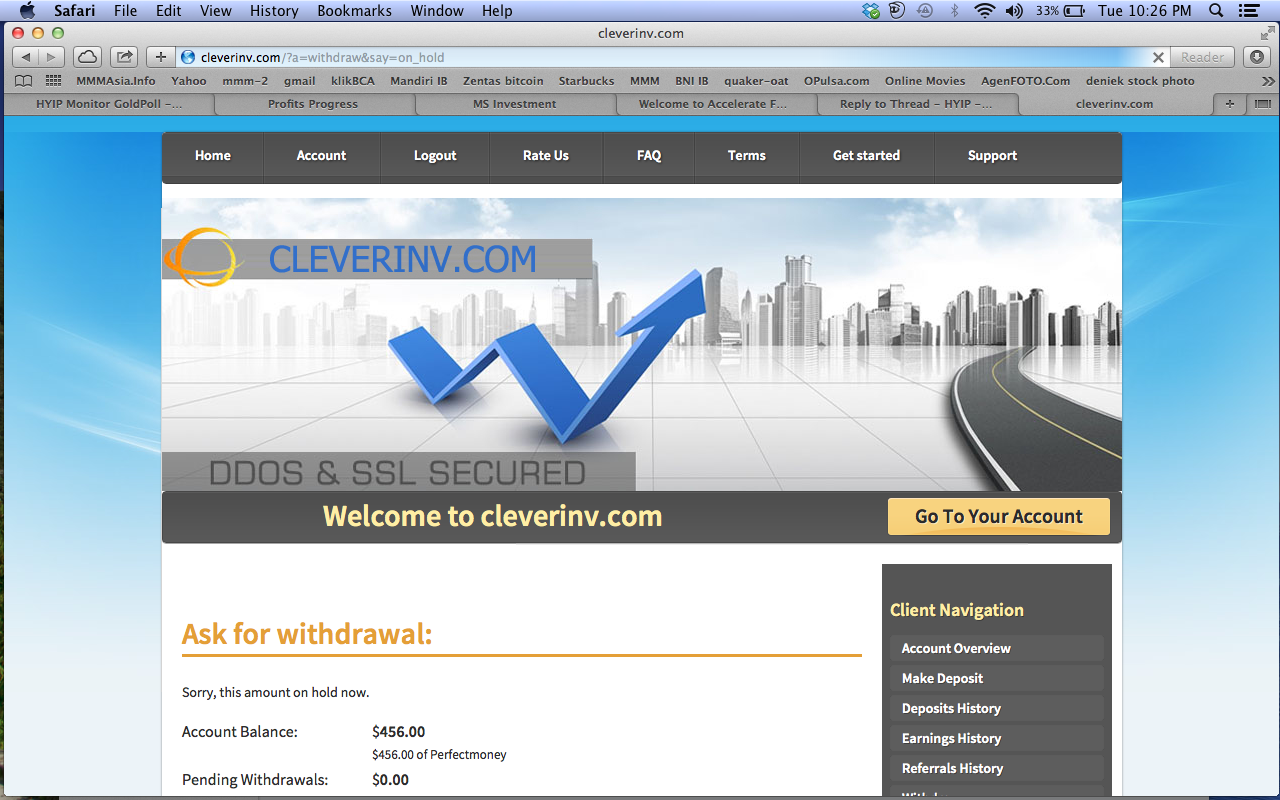 | CleverInv cleverinv.com is an investment group who aims to uphold the values of traditional investing methods while incorporating new age technologies and methodologies in order to maximize profits while minimizing risks by a great margin.We sacrifice minimal losses in order to gain big. We always put our clients' goals before ours. Safe investment does not exist, but investing with minimal risk does. Welcome to cleverinv.com. If you are willing and are ready to change your life now. Please send us an inquiry or head directly to our registration page. Onwards to an opulent future with cleverinv.com. |