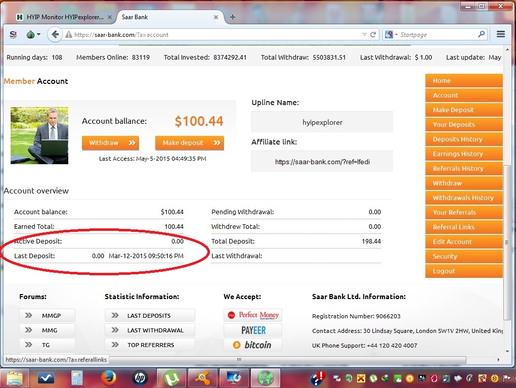 I logged in and checked my balance daily...I couldnt wait to withdraw and ReInvest some more...I remember ...2 more days....1more day...I was so happy and excited...day 0....I kept checking day 0 all day my balance was still 0.00.