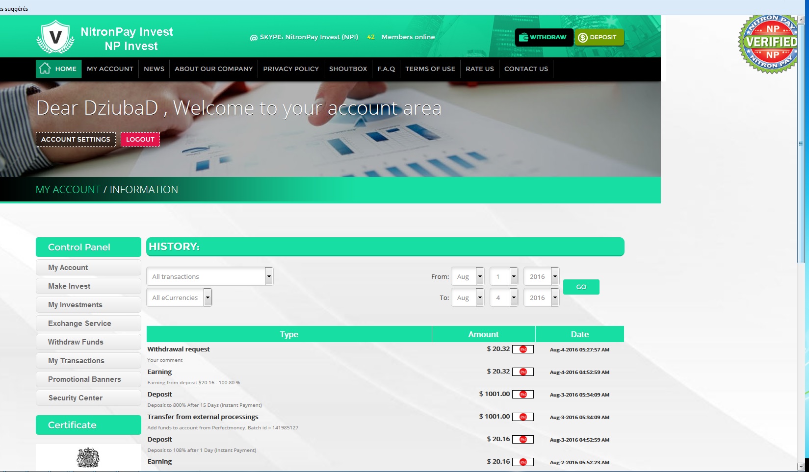 Exclamation Scam/Warnings Reports (Nitron Pay Invest)