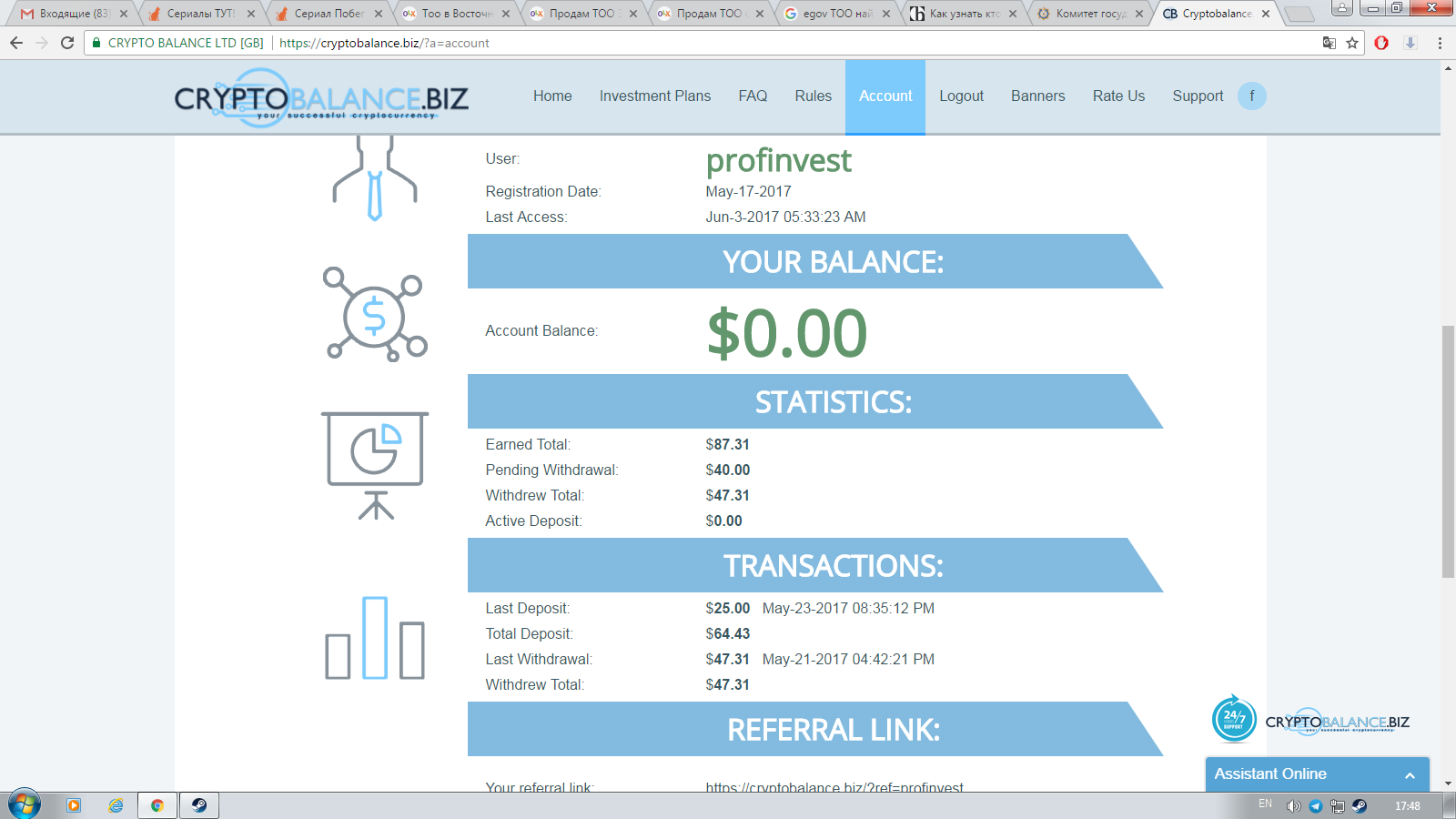 | Cryptobalance.biz Our program is intended for people willing to achieve their financial freedom but unable to do so because they're not financial experts.Cryptobalance.biz is a long term high yield private loan program, backed up by Forex market trading and investing in various funds and activities. Profits from these investments are used to enhance our program and increase its stability for the long term. |