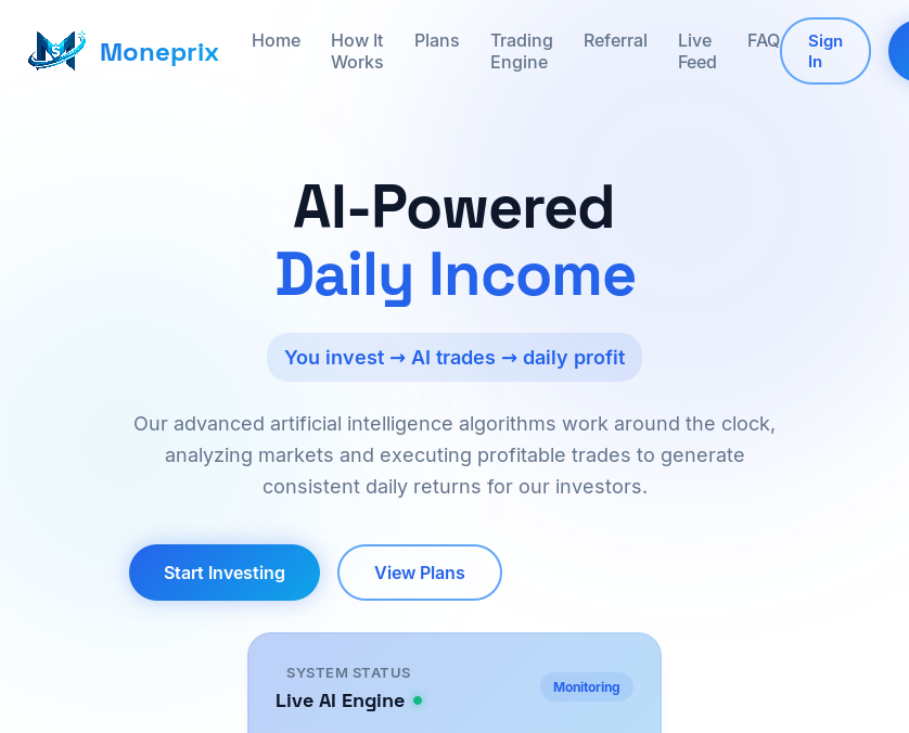 Your reliable ally in the world of cryptocurrency investing. At Moneprix, our mission is to empower our members to grow and manage their digital assets with confidence and efficiency. We recognize the vast opportunities within the crypto space and offer a structured, professional environment designed to help you make the most of them. By focusing on transparency and data-driven strategies, we equip our community with the knowledge, tools, and support needed to make informed investment decisions and achieve sustainable growth.